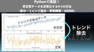 データサイエンス Pythonで実証!非定常データを定常化する4つの方法(差分・トレンド除去・季節調整・ARIMA) 時系列データの分析では定常性の確認が不可欠。本記事ではPythonを使い、差分・トレンド除去・季節調整・ARIMAの4手法で非定常データを定常化する方法を解説します。 2025.10.02 データサイエンス