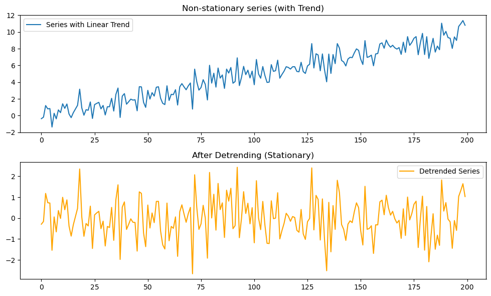 一方で、はっきりとした線形トレンドを持つデータの場合は、差分よりもトレンド除去(Detrending)の方が自然です。また、四半期ごとの季節性が強いデータでは、通常の差分ではなく季節差分(例:12期差分)を行う方が有効です。