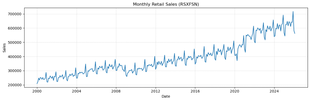 今回は、単変量時系列モデルの代表である ARIMA と SARIMA を取り上げ、月次の小売売上データに対して Python で比較しました。