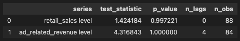 図11. 対数差分後の小売売上と広告・PR関連サービス収入の ADF 検定の結果