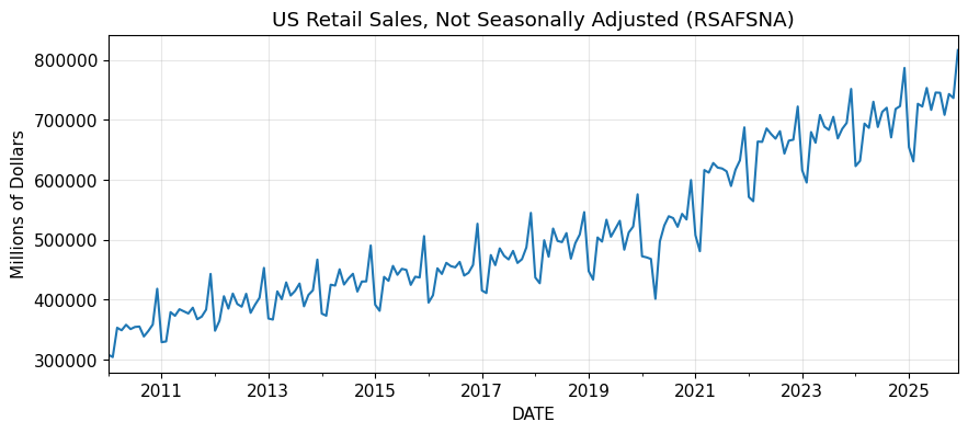 2. 2.2 非季節調整の小売売上をプロットする